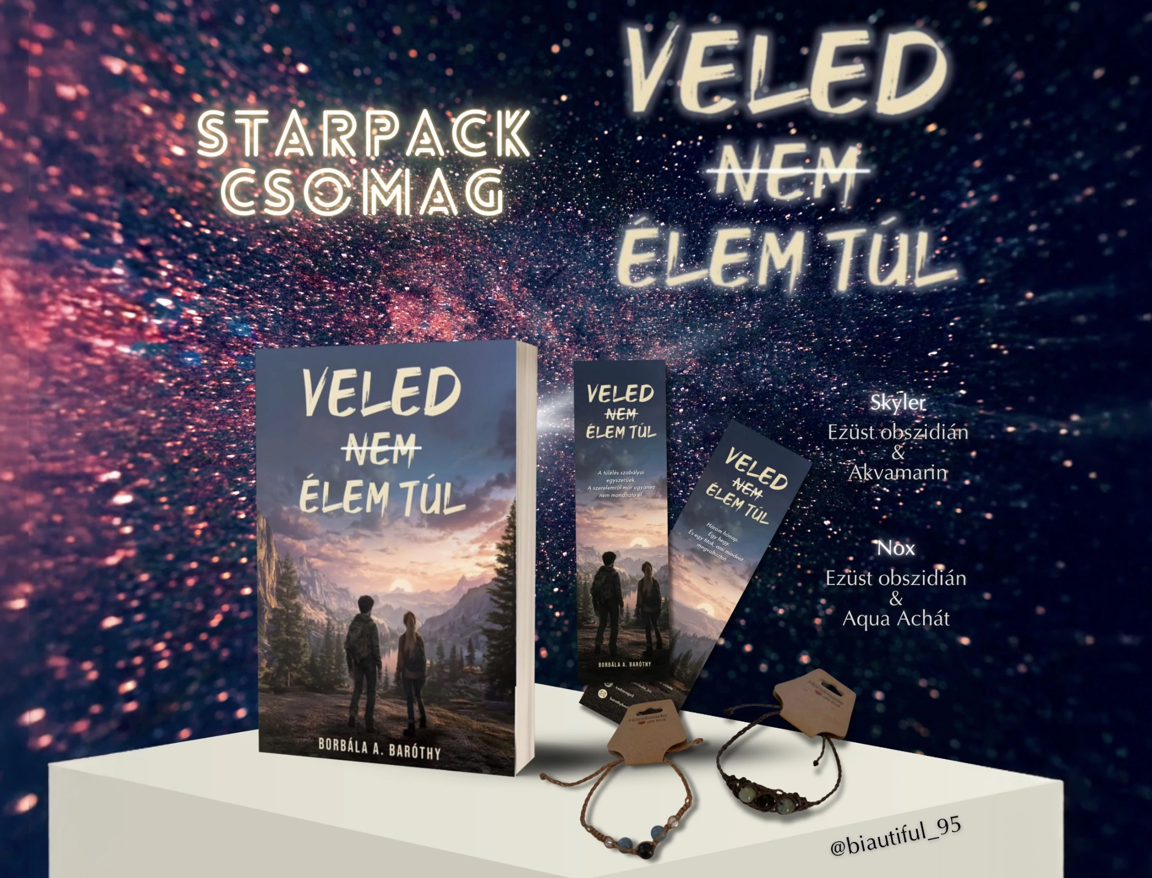 1 db nyomtatott könyv + 1 könyvjelző + 1 db karkötő